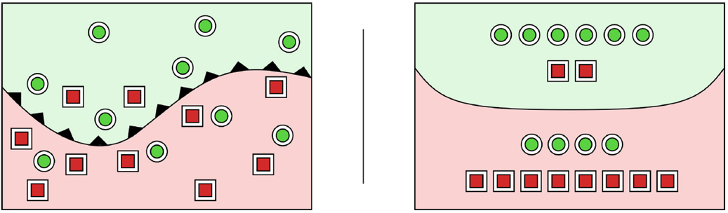 그 후, 30개의 flip을 또 던졌을 때, 24개의 head가 나왔다고 해보자. 이 경우, fair coin은 15개의 head가 나온다고 예측하지만 rigged coin은 6개의 coin이 나온다고 예측할 것이다. 양쪽 다 맞지 않지만, fair coin이 더 높은 확률을 가진다.
