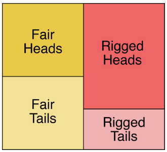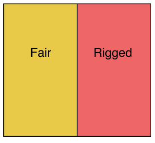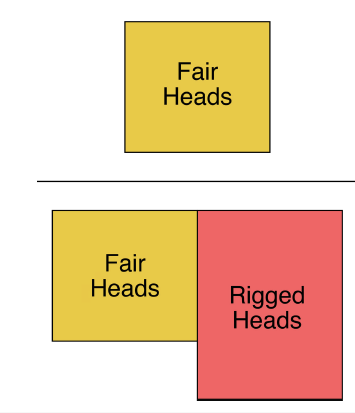 반대로, 앞면과 뒷면이 나올 확률이 같지 않은 coin을 rigged/ unfair/ cheater's coin이라고 한다.