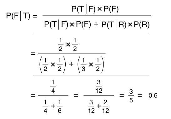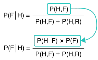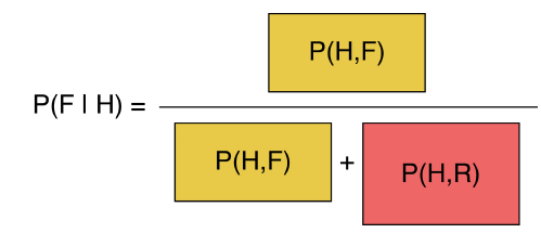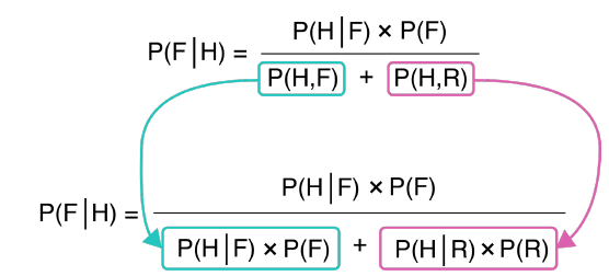 우리는 P(H, F)의 값을 모르기 때문에, P(H|F) x P(F)로 대체하여 이를 대신 계산할 수 있다.