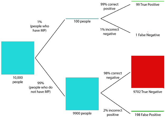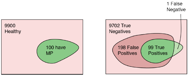 이전 chapter에서는, test의 결과값을 이해하기 위해 confusion matrix를 사용했었다. 이번에는, Bayes' Rule을 사용해서 이해해보도록 하자.