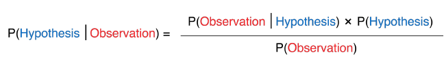 동전 예시에서, hypothesis는 "우리는 fair coin을 선택했다"가 될 것이고, observation은 "동전은 앞면이 나왔다"가 되는 것이다. 여기서 사후 확률(posterior)은 observation이 일어났을 때 hypothesis가 true일 확률을 말한다. 그러나, 우리는 "observation이 발생했다"는 사실을 이미 알고 있기 때문에(그게 우리가 posterior를 계산한 이유니까), posterior는 hypothesis의 확률이 되는 것이다.